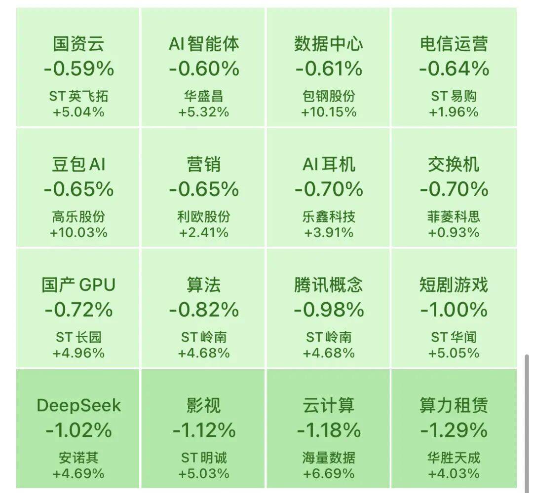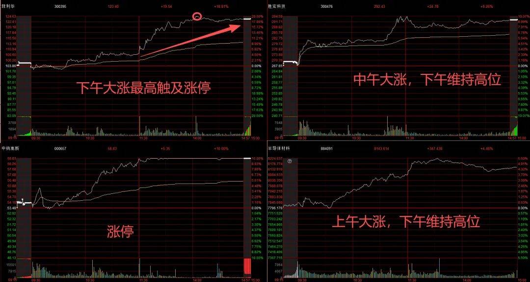 但实际上,今天下半场表现最好的反而是科技涨价,围绕英伟达可能推出的新的推理芯片所含的Q布(菲利华)、PCB(胜宏科技、中钨高新等)等方向,以及半导体材料相关都是大涨。