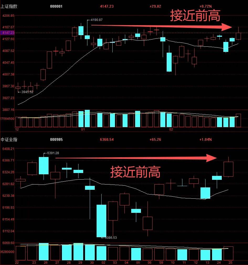 节后两天,指数确实没少涨,无论是上证指数还是中证全指,都来到了前高附近。